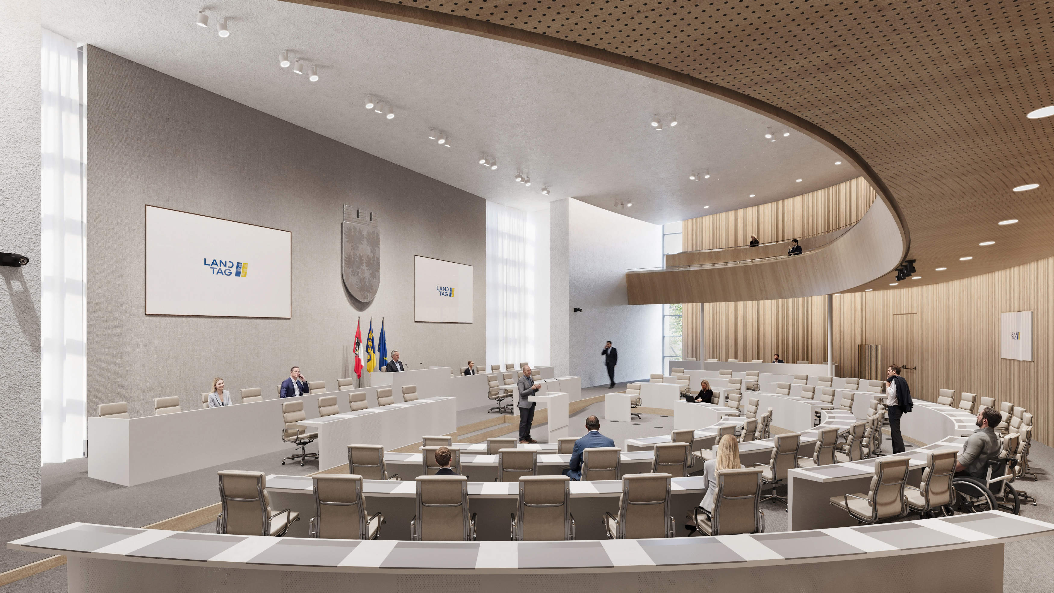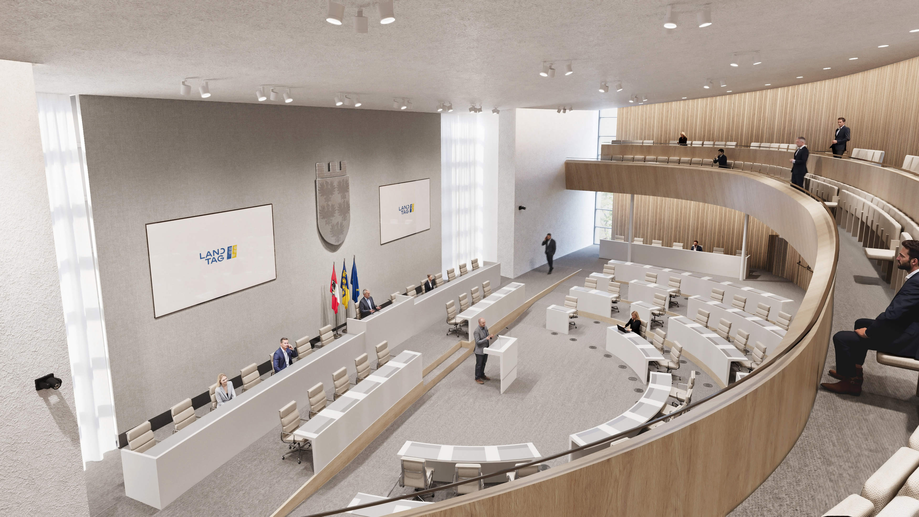 Im Zuge einer umfassenden Modernisierung wird der Landtagssaal grundlegend neu organisiert. Ziel ist eine Umgebung, die den Anforderungen eines modernen, transparenten und funktional optimierten Parlamentarismus gerecht wird. Die Maßnahmen umfassen architektonische und infrastrukturelle Erneuerungen und legen besonderen Wert auf Barrierefreiheit, moderne Arbeitsbedingungen sowie flexible Nutzungsmöglichkeiten.